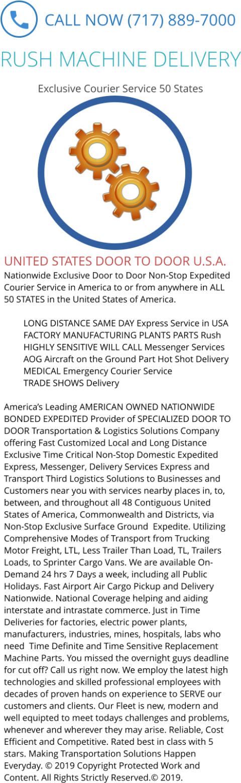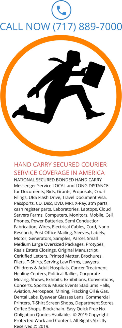 need your passport and visa delivered to you. Yes, we can do that. You missed the over night shipping deadline because you are running late and their offices are closed for the late night, weekend and holidays? Yes We can help we are the oops guys that can save your delivery. High value aircraft, aerospace or high technology parts for shift down manufacturing that needs to be delivered across country coast to coast or in between or across town or in town. You need just in time delivery? Yes we can do that. Need labels, sleeves labels printing supplies delivered for production? Yes can help. You need a secure motor carried for your high value life science products expedited delivery? Yes, we can help. Need your medical pharmaceutical pharma ingredients and finished products deliery on an emergency basis? Yes we can help. Worried about your bids, documents, confidential usb flash drive, rfi, grants and proposals making your deadline. Yes we can help. Call us for a fast no obligation or pressure We welcome new business and customers and welcome back returning recurring ones. Need your missing ingredient or mis-routed shipment today. Yes, we can help you. I Need something courieed shipped delivered. Temperature controlled for special paint coating expedited non-stop same day delivery. Forgot your ticket? We can help. Need a hand carry air courier for electric power and auto manufacturing plants critical parts? Yes we can help, we are a verified local business with national reach and network offices on the left and right coasts and in anywhere and everywhere in between at anytime open today open 24 hours. We offer services you need and want, not like other guys who give you what you deserve. We strongly and firmly believe that we have decades of professional comprehensive combined skills and experience that qualifies to complete your tasks. You want a long distance company and local business that rated one of the best in the field that is highly recommended and trusted. Look no further you found us. You want positive results. We can help with proven efficient dependable anytime transportation solutions. During your search you will find transport information including official webpages images offices locations address terminals fast contact information phone numbers local courier delivery business documents view maps and driving directions places video air courier messenger hand carry delivery logistics shipping mailing moving air freight cargo motor trucking domestic cargo airlines next flight out temperature control auto power plant parts delivery Bonded Same Day Courier Service, Dependable Transportation Service, Secure Shipping Company, High Value Expedited Shipping Service, Highly Sensitive Same Day Delivery Services, Nationwide Shipping and Mailing Service, Coast to Coast Trucking Company, Cross Country Freight Forwarding Service, Premium Comprehensive Logistics, private banking delivery service, executive delivery service, express delivery, legal court filing hand delivery services, Rush Messenger Services, On-Demand Logistics Service, high confidential usb flash drive deliver service, original or certified notorized documents delivery service, Exclusive Moving Company, Corporate Moving and Storage Company, Parcel Service, Commercial Postal Service, Construction Job Site Delivery Service, Private Messenger Service, local delivery business, rescues for delayed or mis-routed shipments stranded at seaport, aiports, ports, trucking terminals docks, linehaul, direct point to point, open now today 24 Hours including holidays and weekends, exclusive non-stop long distance expedited services, on-demand airport pickup and deliveries, emergency medical delivery, time definite life sciences deliveries, aog, airport aircraft on the ground pick up and delivery for commercial or private jet charter, deadline residential or commercial couriers. We have specialized expertise and features to help your find the right courier express solutions for exactly what you are looking for now fast quick rapid and on-demand. Proudly serving Nationwide with AL Courier Service | MT Courier Service | AK Courier Service | NE Courier Service | AZ Courier Service | NV Courier Service | AR Courier Service | NH Courier Service | CA Courier Service | NJ Courier Service | CO Courier Service | NM Courier Service | CT Courier Service | NY Courier Service | DE Courier Service | NC Courier Service | FL Courier Service | ND Courier Service | GA Courier Service | OH Courier Service | OK Courier Service | OR Courier Service | IL Courier Service | PA Courier Service | IN Courier Service | RI Courier Service | IA Courier Service | SC Courier Service | KS Courier Service | SD Courier Service | KY Courier Service | TN Courier Service | LA Courier Service | TX Courier Service | ME Courier Service | UT Courier Service | MD Courier Service | VT Courier